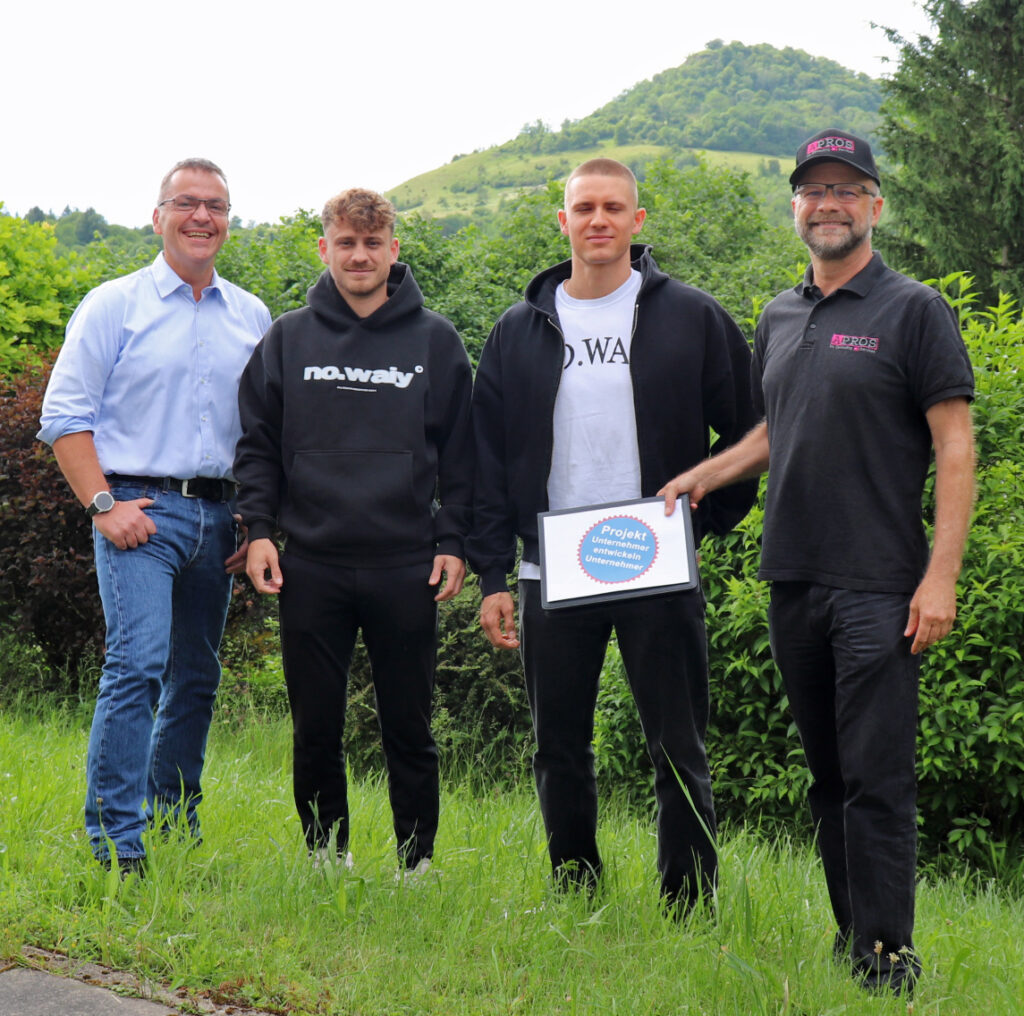 Die diesjährigen Paten und Managerbund-Mitglieder Alexander Jehle von der Jehle-Gruppe GmbH sowie Volker Feyerabend, Hauptsponsor und Geschäftsführer der APROS Consulting & Services GmbH aus Reutlingen, überreichten feierlich die Gewinnerurkunde.